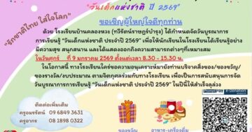 โรงเรียนบ้านคลองหวะ (ทวีรัตน์ราษฎร์บำรุง) เชิญร่วมบริจาคสิ่งของ ของขวัญ ของรางวัล งบประมาณ ตามจิตกุศลร่วมกับทางโรงเรียน เพื่อเป็นการสนับสนุนการจัดวันบูรณาการการเรียนรู้ “วันเด็กแห่งชาติ ประจำปี 2569” 27 ธันวาคม 2568 ข่าวประชาสัมพันธ์ Jutarat Jampakham27 ธันวาคม 2568